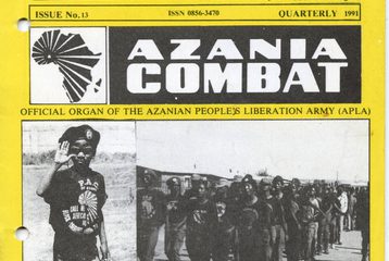 From the early 1960s onwards, the PAC of Azania produced several different publications and journals. Azania Combat was a magazine produced from the mid-1980s, as the official publication of the Azanian People’s Liberation Army (APLA), the military wing of the PAC of Azania during the anti-apartheid struggle. The journal was produced by APLA’s Political Department based in the PAC of Azania’s exiled headquarters in Dar-es-Salaam, Tanzania. Most of the reports appear to have been written by journalists attached to the Dar-es-Salaam headquarters, or in APLA’s training camps in Tanzania, but the issues of Azania Combat also contain reports from ‘underground’ members of the PAC of Azania operating covertly inside South Africa, or exiled members attached to PAC of Azania offices around the world. Many of the articles report guerrilla actions conducted in South Africa by APLA combatants. The journal also reports the wider political work of PAC of Azania members both inside South Africa and internationally, as well as providing a pan-Africanist commentary on political events. Taken together, the issues of Azania Combat in this collection offer insights into PAC of Azania operations and politics in the final decade of the apartheid regime.