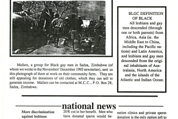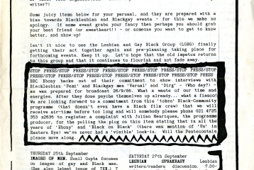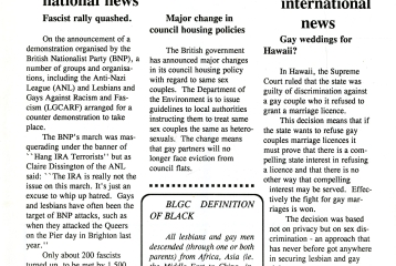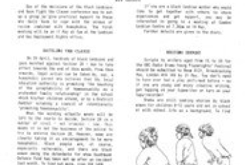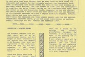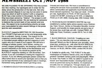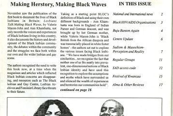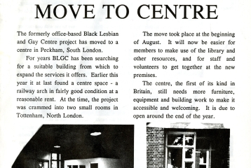Opened in 1985, the Centre provided advice and counselling, a telephone helpline, a library, a social space and other resources for the community – this despite the lack of permanent premises. The Centre produced the magazine Blackout from 1986, providing a forum for the many black gay and lesbian groups that had emerged in London. It also produced newsletters and hosted events and social gatherings.