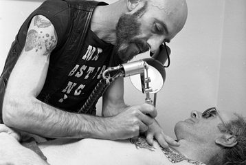 Harrowing’s work as a Clubland Promoter began while she was working as ‘door bitch’ at Queer Nation. She wanted to try and find a balance for queer women that was neither hard Trade techno beats nor trashy disco. She found some amazing DJs and Sister Friction was born. While the music was important, for Harrowing there had also to be an attitude of inclusiveness. Her club nights attracted a mix of queer women, and the flyers and advertising she produced made sure there was a real mix of queer women represented. Over the years these nights included Cruella (at the WKD Bar, Camden); The Fruit Machine (Girl Bar, VIP Area, Heaven); Queer Nation and She’s Got to Have It (Gardening Club, Covent Garden); A Club Called Alice and FISH at YMCA.
