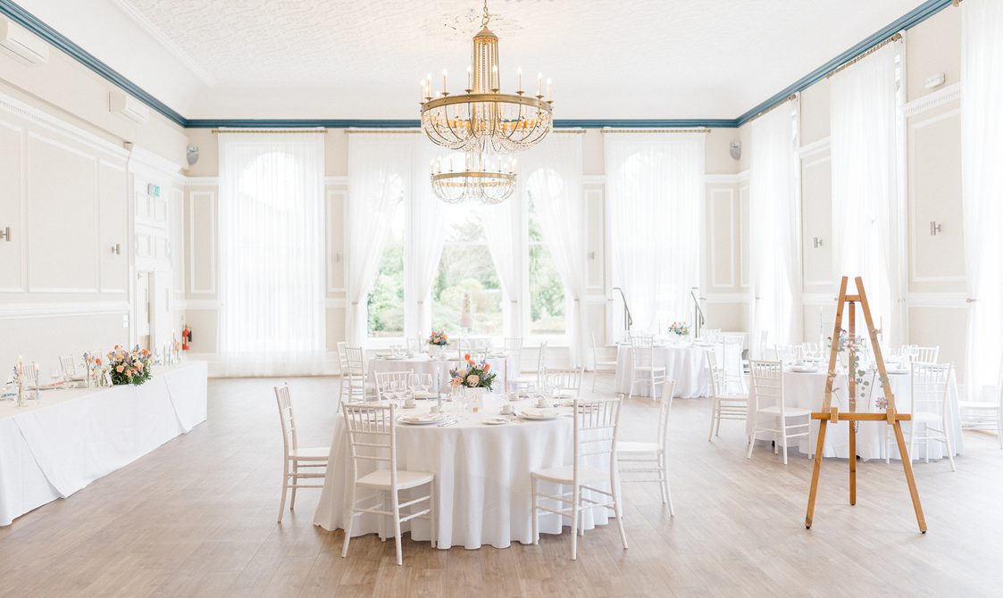 The header image shows some of Furniture Hire UK's furniture in Bishopsgate Institute's library, set up for a wedding reception sit-down meal.