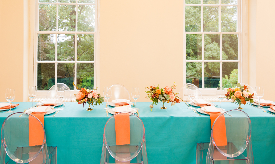 The header image shows some of Furniture Hire UK's furniture in Bishopsgate Institute's library, set up for a wedding reception sit-down meal.