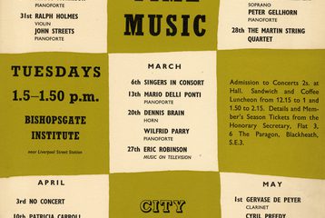 Summary: Music and performance have long been at the heart of Bishopsgate Institute's public programme, with our lunchtime concerts running throughout the twentieth century.