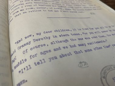 Within our archive there is only one item relating to the Hewins Sisters: the aforementioned memoir. A slender, muddy-green volume that could easily be mistaken for an old notepad, its contents run to just fifty pages, typed and edited by Dorothy Hewins - as the note inside so handily informs. It's something that could have been lost to time, forgotten on a shelf, but fortunately for me – and hopefully you – Michelle Johansen discovered it. Michelle has been using this item in her hands-on history courses and workshops since 2011.